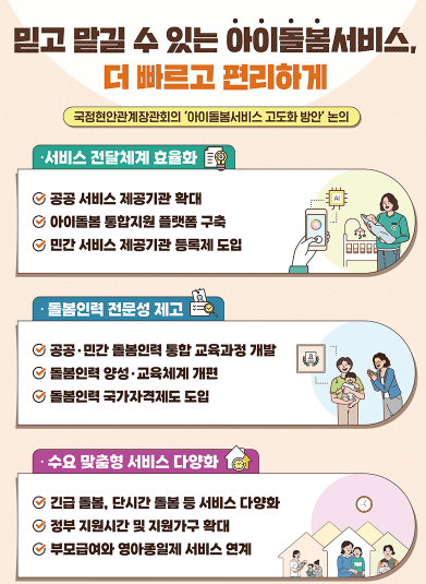 - 민간 제공기관 등록제 도입 추진 → 민간 돌봄 서비스 품질 향상
